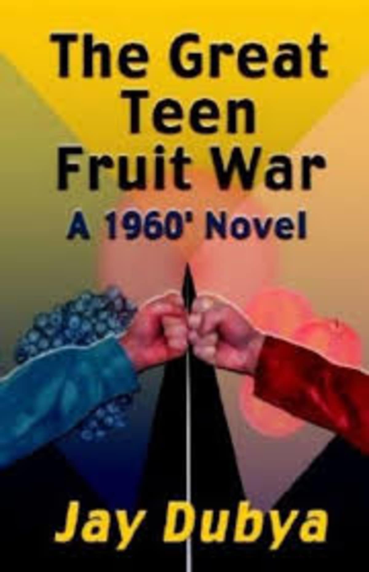 "The Great Teen Fruit War, A 1960' Novel" is author Jay Dubya's eighth e-book. The story takes place in Hammonton, New Jersey, an agricultural community midway between Philadelphia and Atlantic City. The Blues wear blue denim button-down waist-length jackets and are the sons of wealthy blueberry growers. The Reds wear James Dean' red zip-up jackets and are the sons of peach farmers. Bellevue Avenue in the center of town is the dividing line that separates blueberry country to the east and peach territory to the west."The Great Teen Fruit War" is a story for anyone who loves '50s and '60s teen culture. Romance, racial discrimination and conflict between the Reds and the Blues mix into a "coming of age" story that blends humor with drama, suspense and surprise into an action-packed adventure. Throw the town' greasers "The Ramrodders" into the conflict and events heat up in a hurry as the three highly volatile gangs interact.When Goose Restuccio, the son of a Mafia kingpin joins the Reds he challenges Gabe Gillette, the leader of the rich-kid Blues. Goose's father's hit men get involved in some clever pranks played on the Blues, and the blueberry kids retaliate with deceptive tricks of their own. Soon strife escalates into violence. Goose is captured by Blues and then forced to rape a black girl, and after Crystal Davis becomes pregnant, her black friends ally with the Reds against a coalition of Blues and Ramrodders. The "Great Teen Fruit War" is the exciting sequel to "Black Leather and Blue Denim, A '50s Novel."